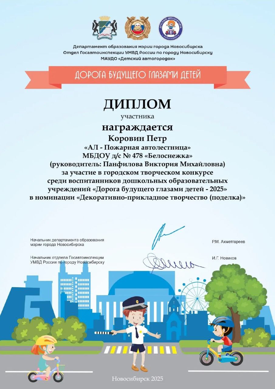 Городской творческий конкурс среди воспитанников ДОУ "Дорога будущего глазами детей - 2025" в номинации "Декоративно - прикладное творчество (поделка)"