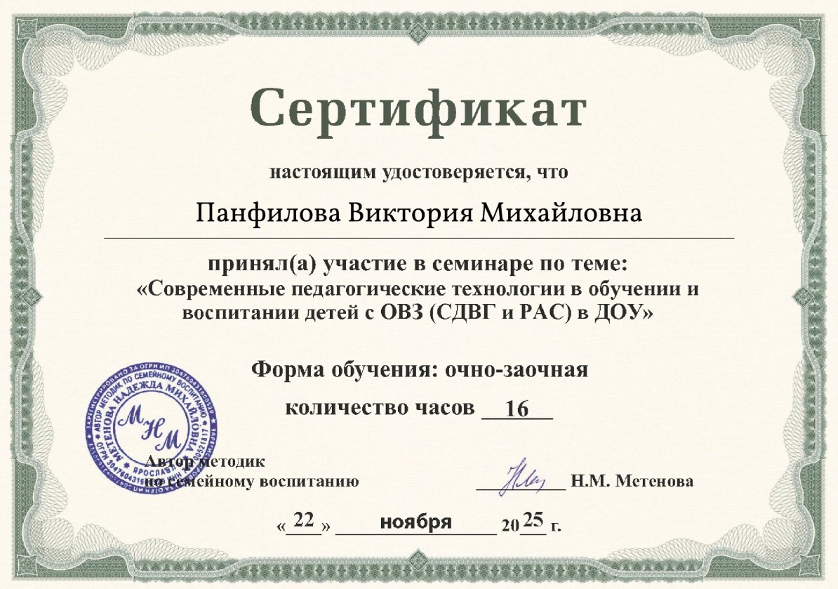 Семинар "Современные педагогические технологии в обучении и воспитании детей с ОВЗ (СДВГ и РАС) в ДОУ"